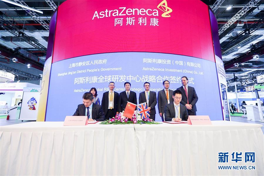 阿斯利康在第二屆進(jìn)博會(huì)上與上海市政府簽訂戰(zhàn)略合作協(xié)議(11月6日攝)。新華社記者張玉薇攝