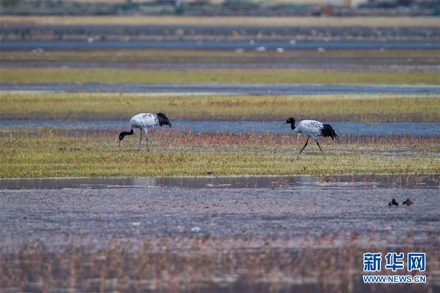 黑頸鶴在納帕海自然保護(hù)區(qū)棲息(11月10日攝)。 新華社記者 胡超 攝