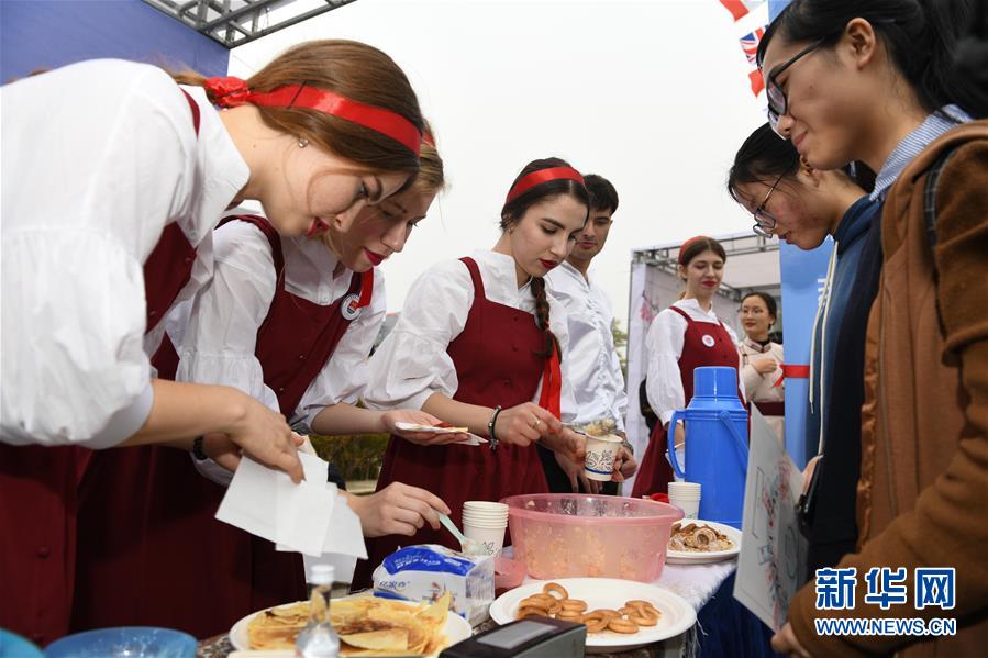 11月17日,來自俄羅斯的留學(xué)生在國際文化節(jié)上將自己制作的美食給觀眾品嘗。 新華社記者 張端 攝