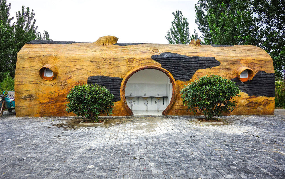2016年8月8日,安徽淮北,一所酷似大樹干的藝術(shù)造型公廁,亮相于淮北段園鎮(zhèn)大莊村葡萄采摘園里,引來(lái)很多市民的關(guān)注。吳克濤/視覺(jué)中國(guó)