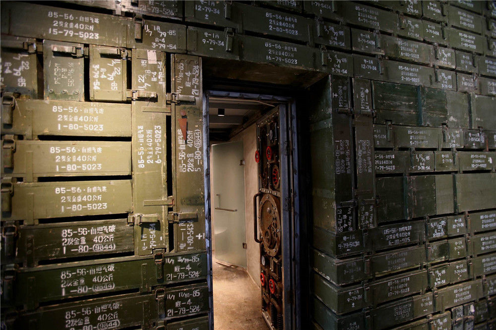 2017年6月18日,河南濟源王屋山“那些年小鎮(zhèn)”一退役兵工廠內,一處用千余個彈藥箱和軍工零部件打造而成的奇特洗手間驚艷亮相。DF/視覺中國