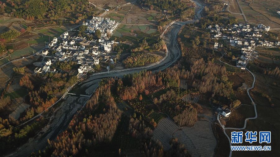 這是11月15日無人機(jī)拍攝的安徽黟縣宏村風(fēng)景區(qū)附近的村落。新華社記者張端攝