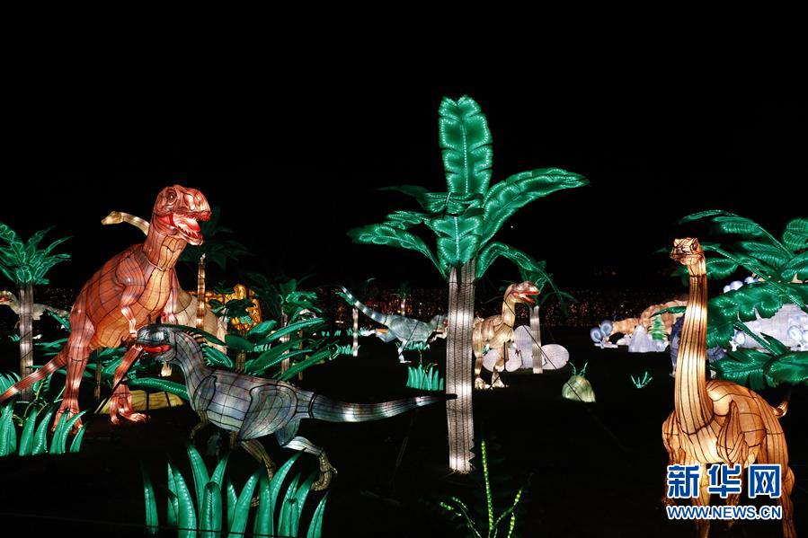 這是11月20日在美國(guó)紐約斯塔滕島第二屆紐約花燈游園會(huì)上拍攝的恐龍花燈。當(dāng)日,第二屆紐約花燈游園會(huì)在美國(guó)紐約斯塔滕島開(kāi)幕,50余組各類花燈照亮夜空,吸引觀眾前來(lái)賞燈游玩。新華社記者李木子攝