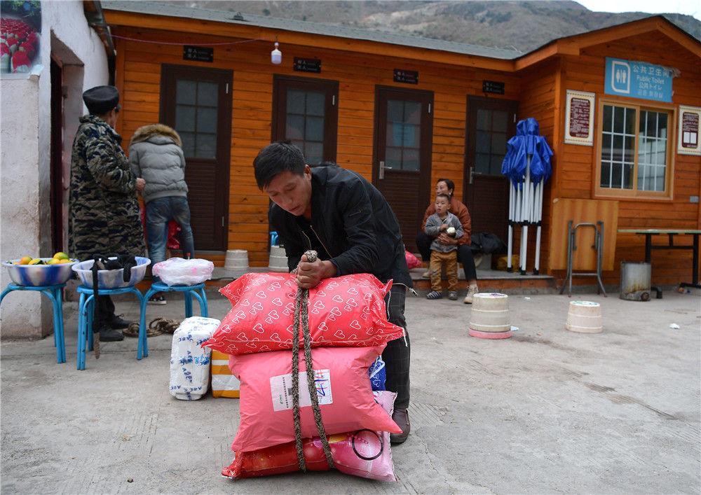由于道路問題,村民養(yǎng)殖的牲口都運不到山下,基本都是自產(chǎn)自銷。村民把產(chǎn)量有限的花椒和核桃背到山下,換回日用品和少量的現(xiàn)金,村民普遍處于貧困線下。圖片來源:視覺中國