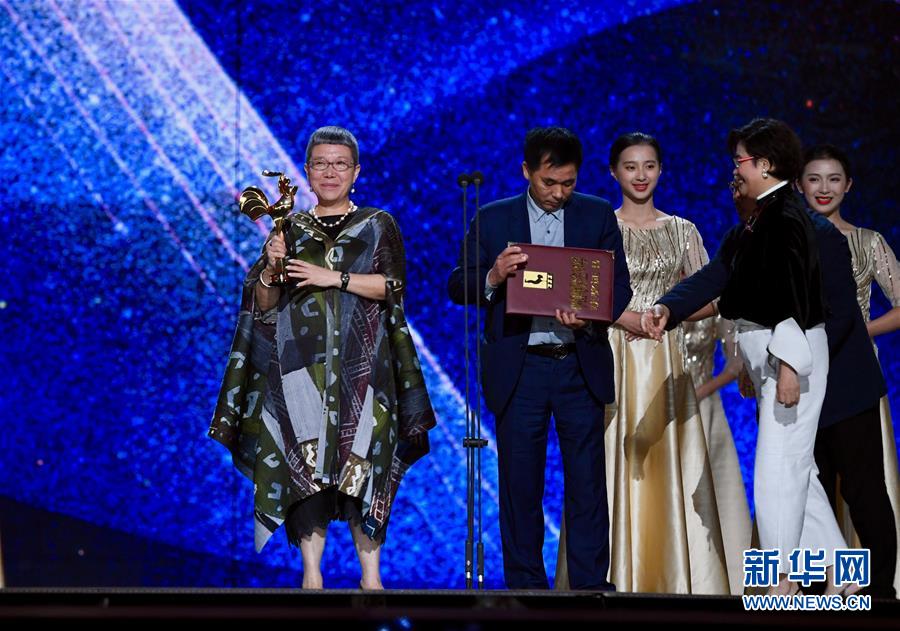 11月23日,最佳中小成本故事片獎獲獎電影《紅花綠葉》導演劉苗苗(左一)出席頒獎典禮。 當日,第32屆中國電影金雞獎頒獎典禮在福建廈門舉行。 新華社記者姜克紅攝