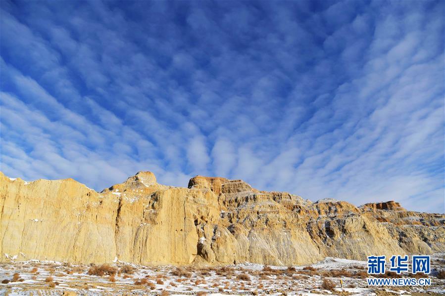 11月26日拍攝的新疆福??h烏倫古湖海上魔鬼城景區(qū)美景。福??h烏倫古湖海上魔鬼城景區(qū)位于新疆阿勒泰地區(qū)福??h吉力湖東岸,有著獨特的雅丹地貌和水域景觀,是當?shù)刂穆糜蝿俚亍P氯A社記者沙達提攝