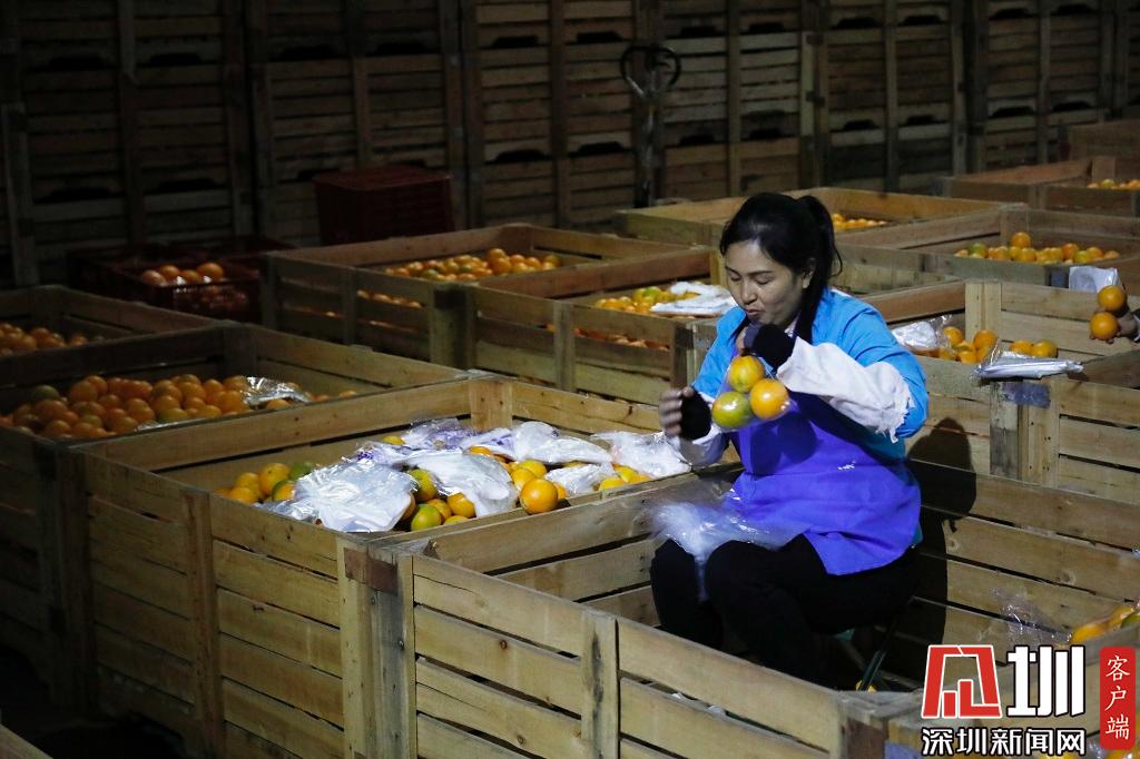 臍橙被處理完后,有工人專門打包。