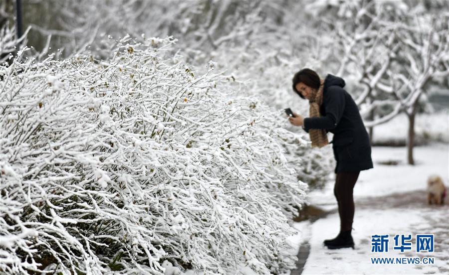 11月30日,一名市民在拍攝雪景。  新華社記者 李欣 攝