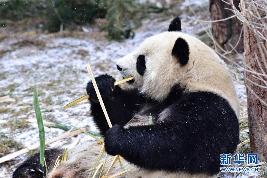 11月29日,在西寧熊貓館內(nèi),兩只大熊貓在吃竹子。 當日,青海省西寧市迎來降雪,西寧熊貓館四只“萌寵”大熊貓在雪天里享受著吃竹子的樂趣。據(jù)了解,大熊貓生活的適宜溫度在26攝氏度至零下5攝氏度之間,冬季氣溫低于零下5攝氏度時,場館會啟用保暖設(shè)施。 新華社記者 吳剛 攝