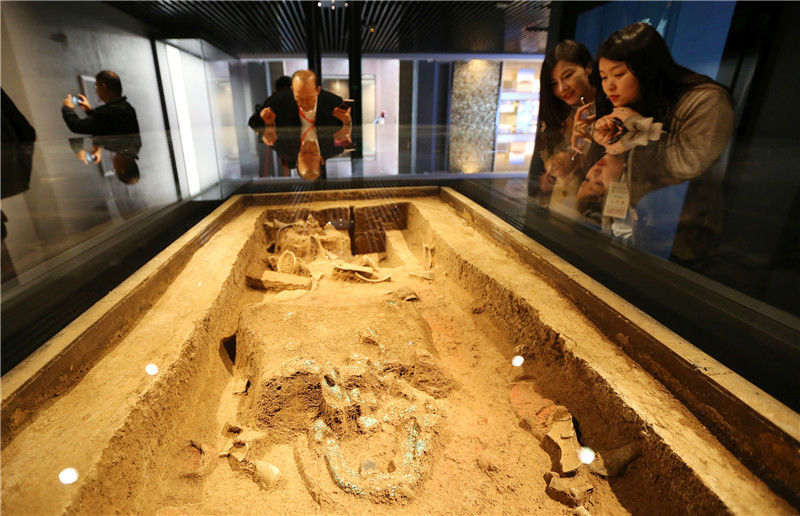 參觀者在二里頭夏都遺址博物館內參觀(10月19日攝)。新華社記者李安攝
