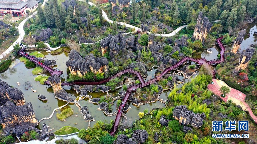 這是云南石林彝族自治縣黑石箐石林景觀(11月28日無人機(jī)拍攝)。新華社記者張愛林?jǐn)z