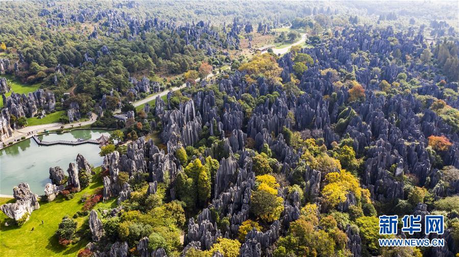 11月28日,空中俯瞰石林景區(qū)(無人機拍攝)。新華社記者江文耀攝