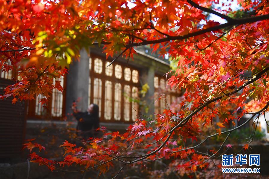 11月17日,游客在廬山植物園內(nèi)游玩(圖片翻轉(zhuǎn)180度)。新華社記者張浩波攝