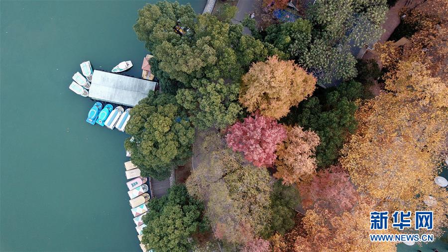 初冬時節(jié),位于湖南省長沙市開福區(qū)的湖南烈士公園年嘉湖畔暖陽照耀,色彩繽紛的樹葉與年嘉湖碧水構(gòu)成一幅美麗的冬日畫卷。