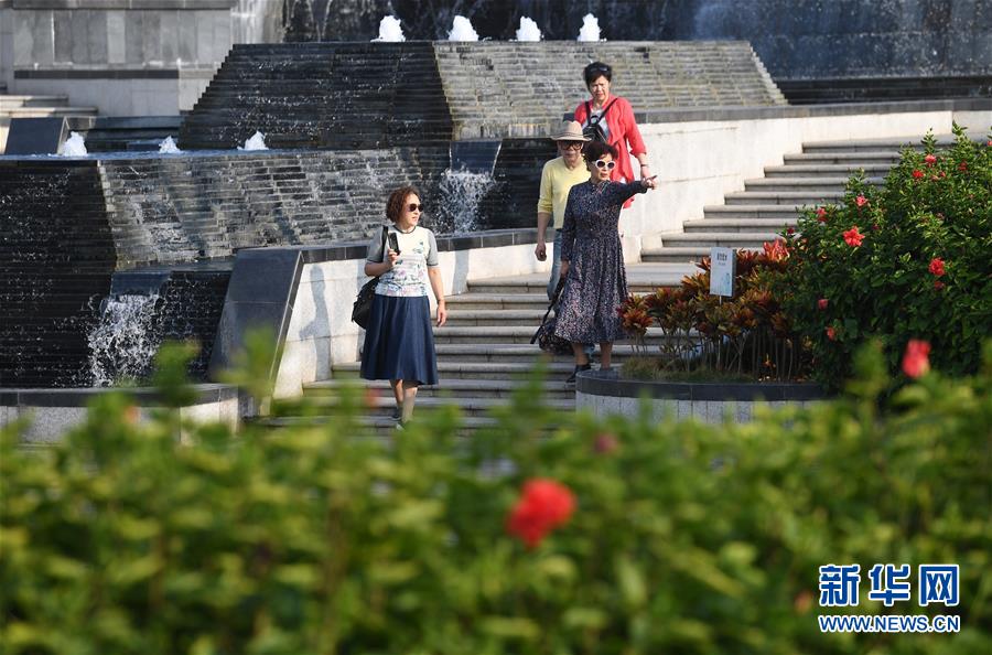 12月17日,市民從南寧市南湖邊綠樹鮮花間走過。 新華社記者 陸波岸 攝