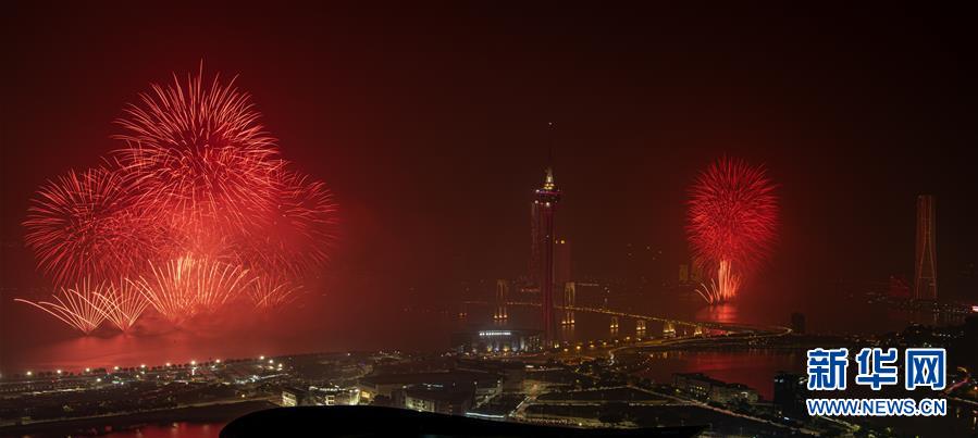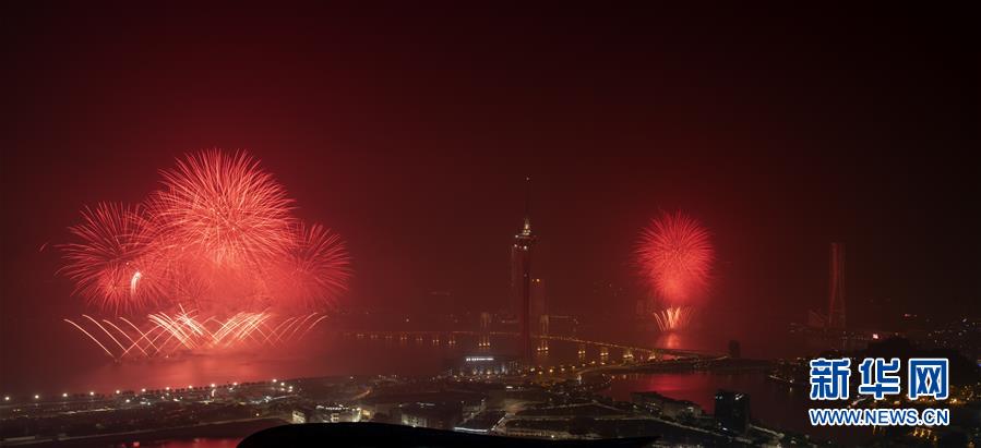 12月22日,煙花在澳門上空綻放。當晚,澳門與珠海首次聯(lián)合舉行煙花匯演,慶祝澳門回歸祖國20周年。新華社記者張金加攝