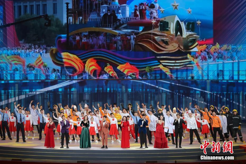 12月19日晚,慶祝澳門回歸祖國20周年文藝晚會在澳門東亞運動會體育館舉行。圖為韓磊(中)等領唱合唱《中國澳門》。中新社記者謝光磊攝