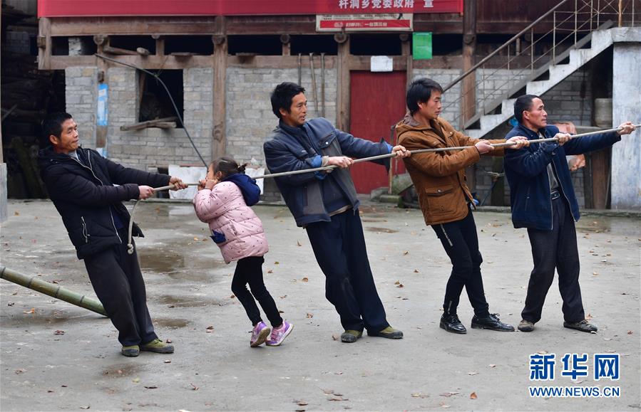烏英苗寨村民在立新蘆笙柱(12月22日攝)。新華社記者黃孝邦攝