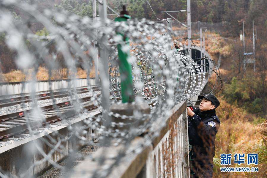 12月18日,常曉龍?jiān)谂挪殍F路沿線護(hù)欄的安全隱患。新華社記者張端攝