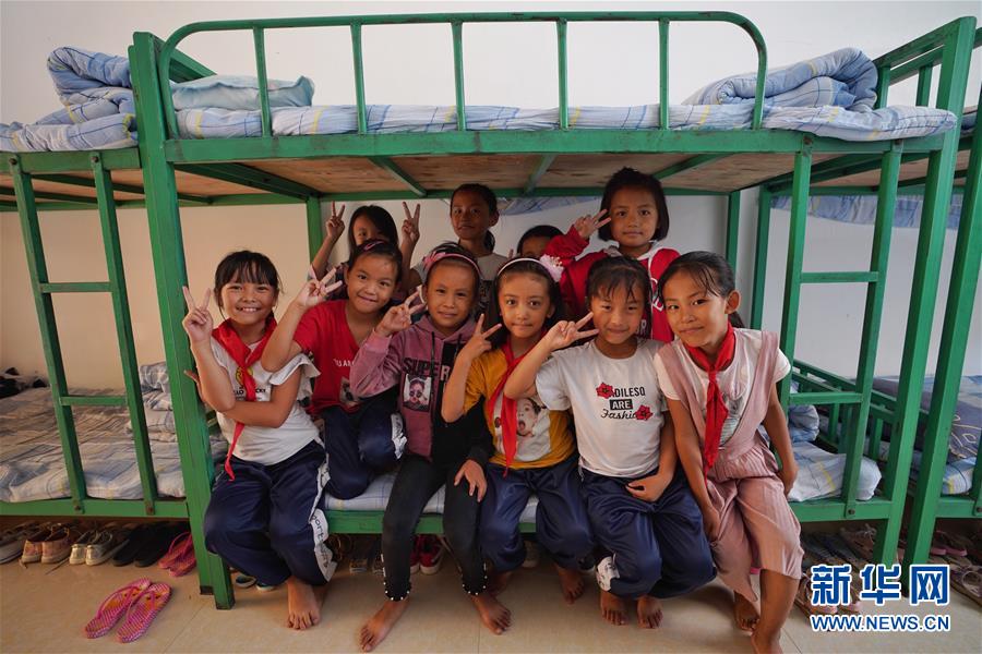 大興地鎮(zhèn)維拉壩“珠海小區(qū)”小學(xué)一年級學(xué)生在宿舍合影(6月24日攝)。新華社記者秦晴攝