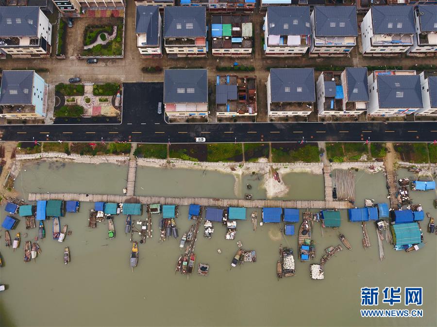 在寧德福安市溪邳村,一艘漁船經(jīng)過岸上新居(3月8日無人機(jī)拍攝)。新華社記者姜克紅攝