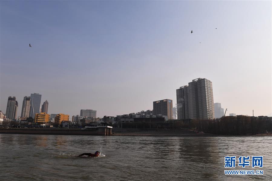 12月18日,冬泳愛好者趙西普在黃河冬泳。新華社記者陳斌攝