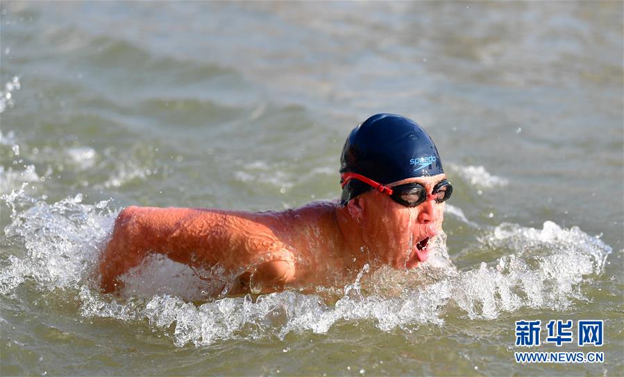 12月18日,冬泳愛好者趙西普在黃河冬泳。新華社記者陳斌攝