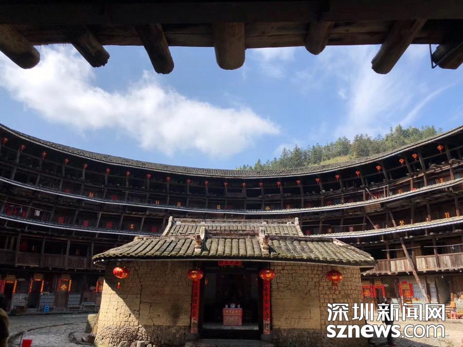 樓為5層結(jié)構(gòu),每層有54間大小相同的斧狀房間,底層廚房每家有一口水井,井水清凈可食;這座土樓建成后不久,樓內(nèi)回廊木柱便開始從左向右傾斜,最大傾斜度為15度,但經(jīng)受住了幾百年風(fēng)雨侵蝕和無數(shù)次地震,故也被稱為“東歪西斜樓”。孫衛(wèi)南攝