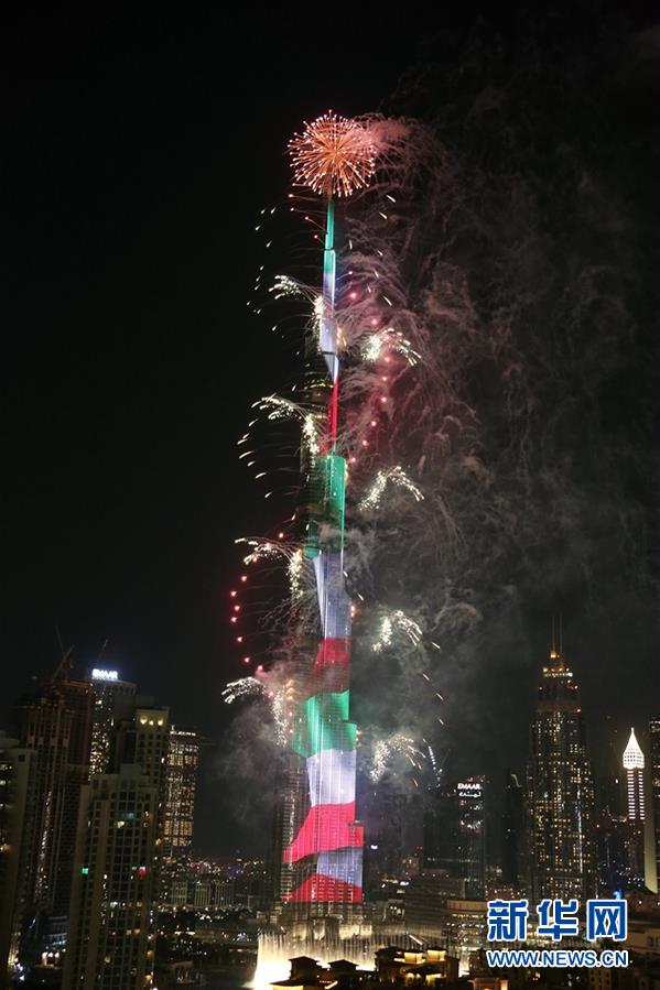 這是2020年1月1日拍攝的阿聯(lián)酋迪拜哈利法塔跨年煙火表演。新華社記者蘇小坡攝