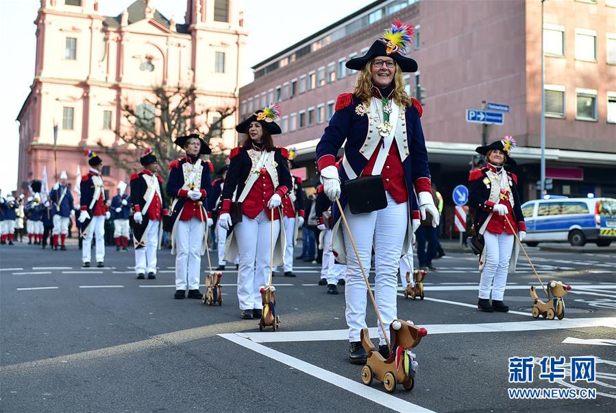 1月1日,在德國美因茨,人們參加新年游行活動。新華社記者逯陽攝