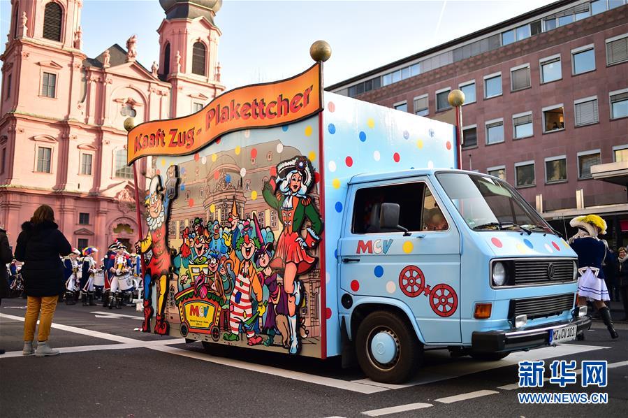 這是1月1日在德國美因茨新年游行活動中拍攝的一輛彩車。新華社記者逯陽攝