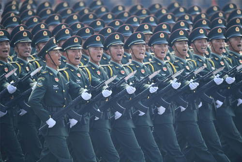 2019年10月1日,慶祝中華人民共和國成立70周年大會在北京天安門廣場隆重舉行。這是女兵方隊接受檢閱。新華社記者王毓國攝