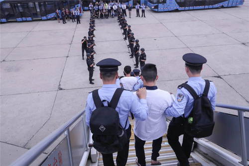2019年6月7日,在北京首都國際機場,94名冒充公檢法機關工作人員實施電信網(wǎng)絡詐騙的中國臺灣籍犯罪嫌疑人被我國公安機關從西班牙押解回國。這是我國首次從歐洲大規(guī)模押回電信網(wǎng)絡詐騙犯罪嫌疑人。新華社記者殷剛攝