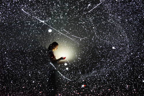 2019年5月28日, 參觀者在貴州省貴陽市舉辦的2019中國國際大數(shù)據(jù)產(chǎn)業(yè)博覽會“追夢·未來”數(shù)字藝術特展上觀看和體驗藝術作品《宇宙深空》。新華社記者楊文斌攝