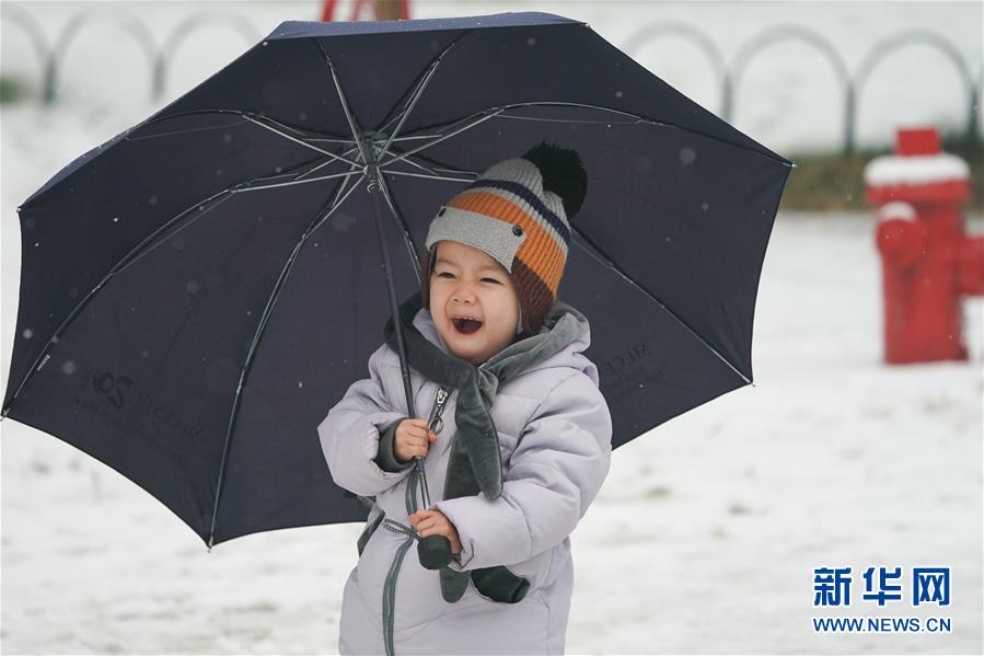 12月16日,在北京天壇公園,一名小朋友撐傘玩耍。當(dāng)日,北京迎來(lái)降雪天氣。新華社記者鞠煥宗攝