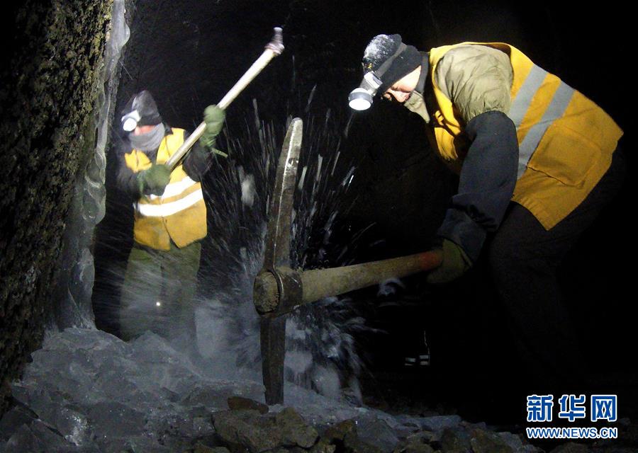 1月7日,在加格達奇工務(wù)段西羅奇嶺二號隧道,西羅奇維修工隊工作人員進行隧道除冰作業(yè)。新華社記者王毓國攝