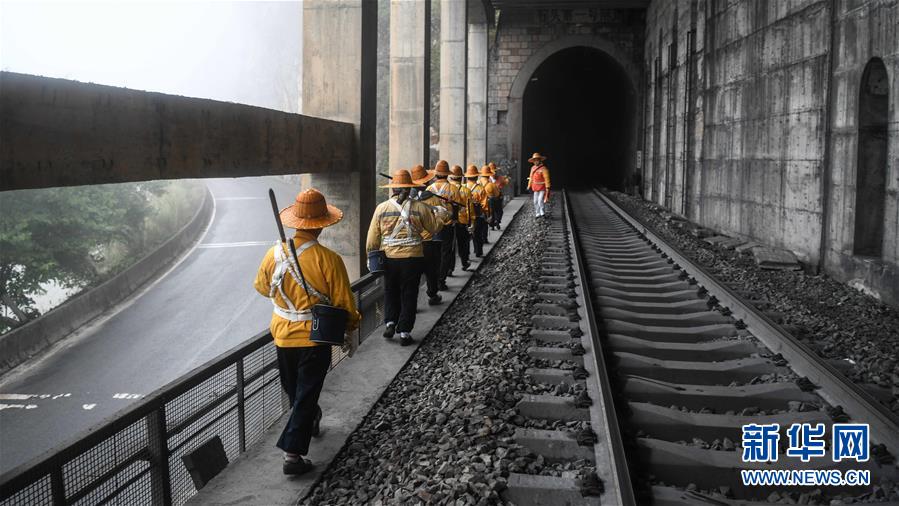 1月14日,百色工務(wù)段白水河橋隧工區(qū)班組成員開展巡查工作。在中國鐵路南寧局集團(tuán)公司百色工務(wù)段白水河橋隧工區(qū),有一個(gè)由14名工人組成的班組。他們常年像“爬山虎”一樣行走攀爬在地形險(xiǎn)峻、云霧繚繞的高山上,負(fù)責(zé)南昆鐵路轄區(qū)路段的搜山掃石工作,清除一切可能危害鐵路行車安全的因素,保障旅客出行安全。新華社記者張愛林?jǐn)z