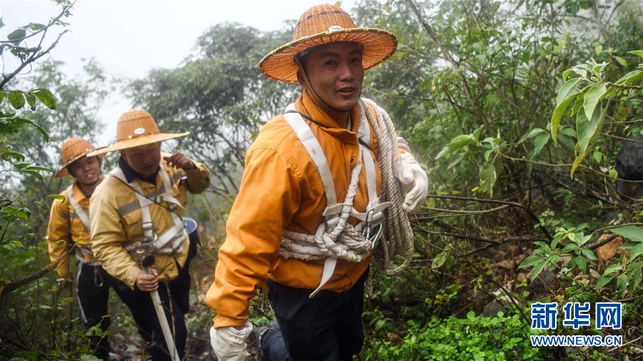 1月14日,百色工務(wù)段白水河橋隧工區(qū)班組成員在搜山掃石。在中國(guó)鐵路南寧局集團(tuán)公司百色工務(wù)段白水河橋隧工區(qū),有一個(gè)由14名工人組成的班組。他們常年像“爬山虎”一樣行走攀爬在地形險(xiǎn)峻、云霧繚繞的高山上,負(fù)責(zé)南昆鐵路轄區(qū)路段的搜山掃石工作,清除一切可能危害鐵路行車(chē)安全的因素,保障旅客出行安全。新華社記者張愛(ài)林?jǐn)z