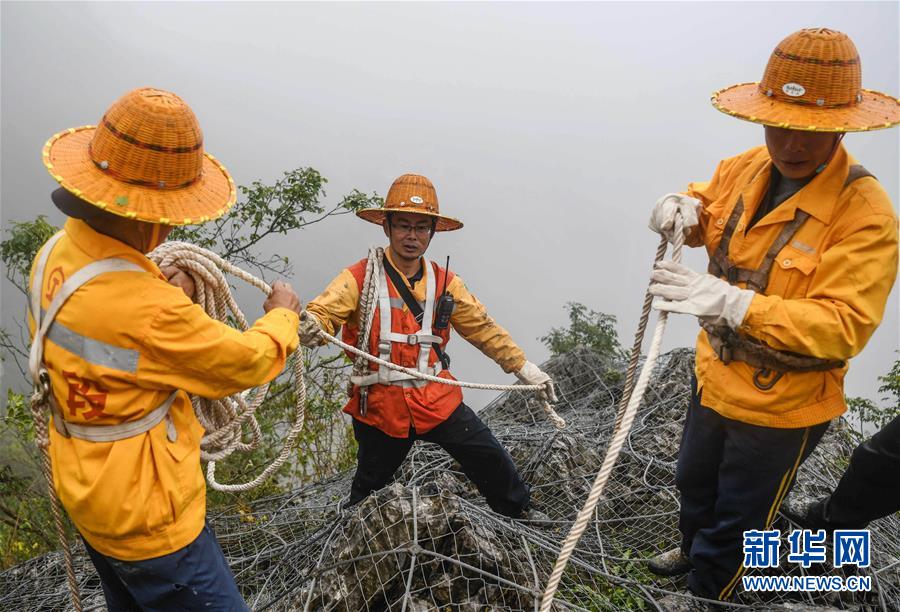 1月14日,百色工務(wù)段白水河橋隧工區(qū)班組工長王勇(中)在穿戴安全裝備,準(zhǔn)備下山崖巡查。在中國鐵路南寧局集團(tuán)公司百色工務(wù)段白水河橋隧工區(qū),有一個(gè)由14名工人組成的班組。他們常年像“爬山虎”一樣行走攀爬在地形險(xiǎn)峻、云霧繚繞的高山上,負(fù)責(zé)南昆鐵路轄區(qū)路段的搜山掃石工作,清除一切可能危害鐵路行車安全的因素,保障旅客出行安全。新華社記者張愛林?jǐn)z