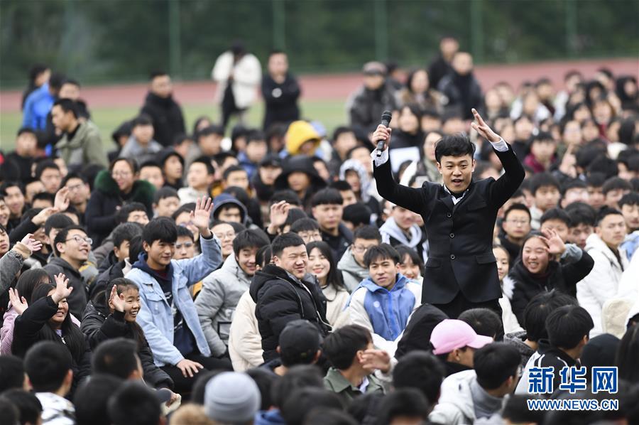 1月15日,中央歌劇院男中音歌唱家王藝清在慰問(wèn)演出中與觀(guān)眾互動(dòng)。 當(dāng)日,“我們的中國(guó)夢(mèng)”——文化進(jìn)萬(wàn)家中央歌劇院文藝小分隊(duì)來(lái)到重慶市石柱土家族自治縣第一職業(yè)學(xué)校進(jìn)行慰問(wèn)演出,為學(xué)校的三千多名師生帶來(lái)了一場(chǎng)精彩的音樂(lè)大餐。 新華社記者 王全超 攝