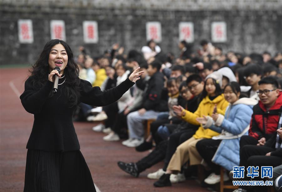 1月15日,中央歌劇院的歌唱家們?cè)谖繂?wèn)演出中演唱。 當(dāng)日,“我們的中國(guó)夢(mèng)”——文化進(jìn)萬(wàn)家中央歌劇院文藝小分隊(duì)來(lái)到重慶市石柱土家族自治縣第一職業(yè)學(xué)校進(jìn)行慰問(wèn)演出,為學(xué)校的三千多名師生帶來(lái)了一場(chǎng)精彩的音樂(lè)大餐。 新華社記者 王全超 攝