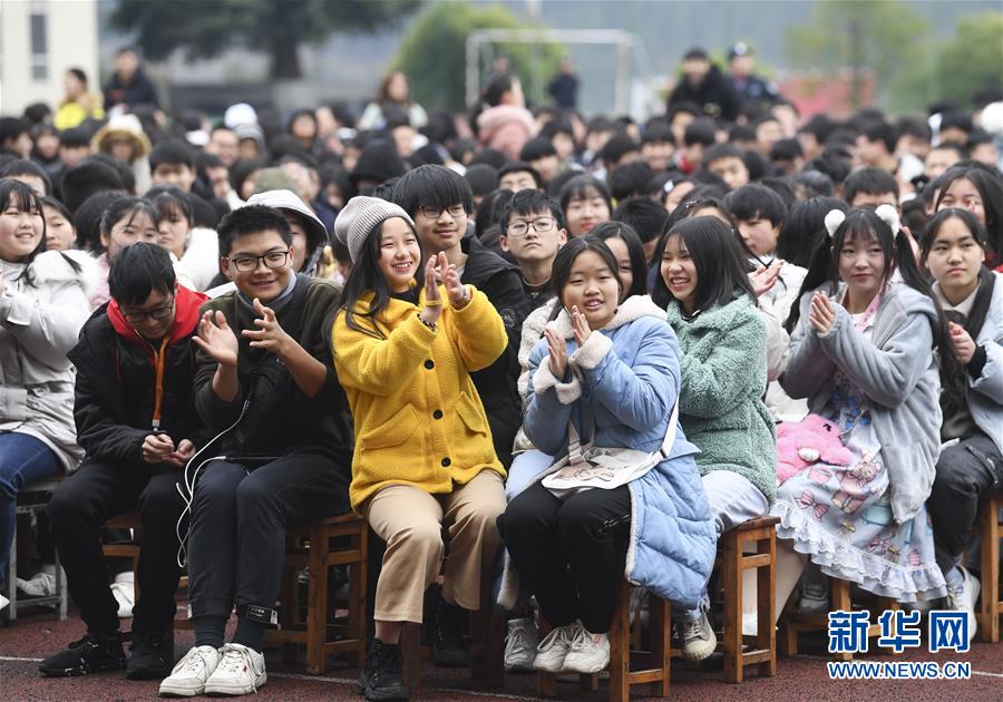 1月15日,師生們在觀看慰問演出。 當日,“我們的中國夢”——文化進萬家中央歌劇院文藝小分隊來到重慶市石柱土家族自治縣第一職業(yè)學校進行慰問演出,為學校的三千多名師生帶來了一場精彩的音樂大餐。 新華社記者 王全超 攝