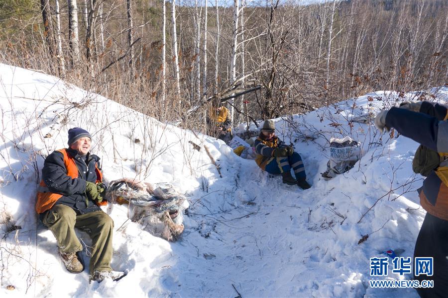 1月8日,西羅奇維修工隊(duì)工作人員在作業(yè)現(xiàn)場(chǎng)坐在雪地上臨時(shí)休息。新華社記者才揚(yáng)攝