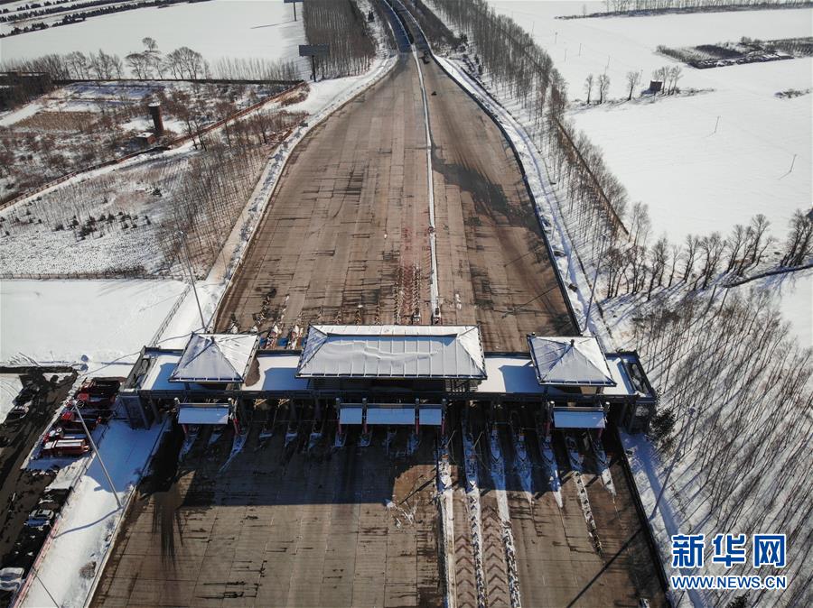2月24日,哈牡高速公路哈爾濱收費(fèi)站重新開放(無人機(jī)照片)。 新華社記者 王松 攝