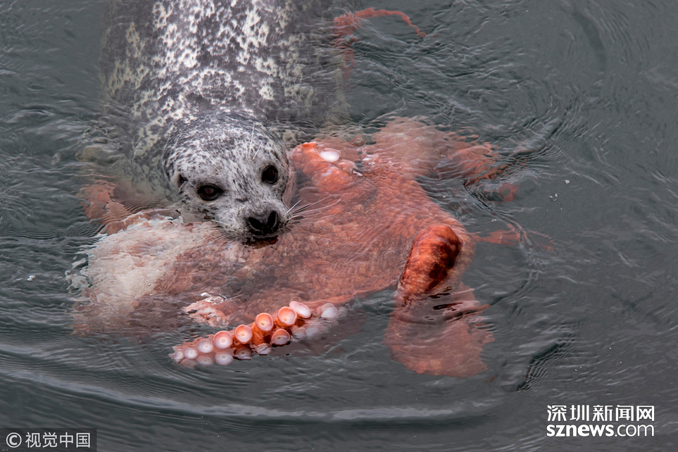 當(dāng)?shù)貢r間2015年2月12日,加拿大奧格登角,一只海豹與一只巨大的章魚死戰(zhàn)。這場惡戰(zhàn)最終以海豹的勝利而告終。商人Bob Ianson日前在與家人旅行時,意外拍到巨型章魚與海豹搏斗的全過程。