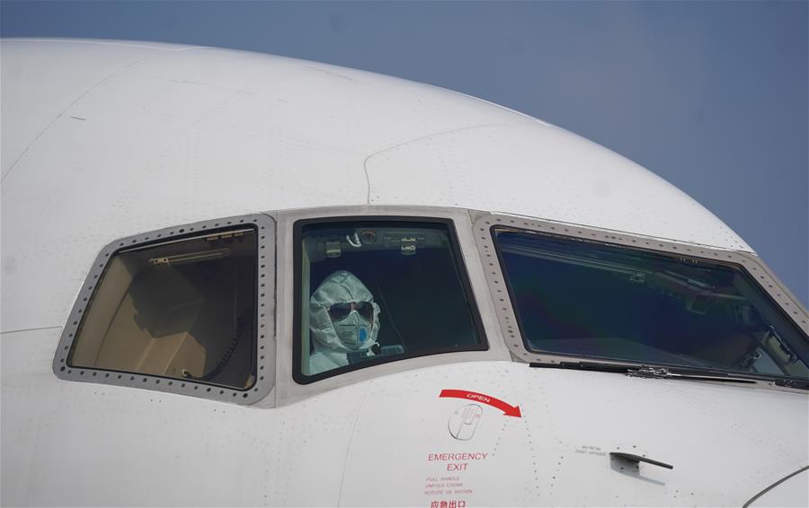 1月28日,飛行員駕駛滿載援助物資的飛機抵達武漢天河機場。新華社記者 程敏 攝