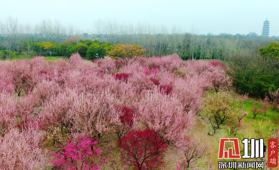 2020年2月26日,春暖花開,春意盎然,江蘇省揚州市蜀岡西峰生態(tài)公園內(nèi)梅花競相綻放,五顏六色的梅花樹為古城大地披上七彩春裝,美不勝收,吸引了市民和游客前來踏春賞景。