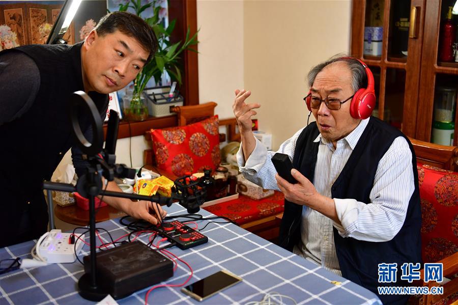 武忠(右)在直播中表演晉劇片段(3月6日攝)。 新華社記者 曹陽(yáng) 攝