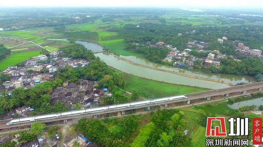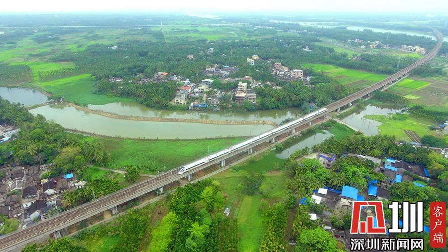 2020年3月17日,海南環(huán)島鐵路一列動車從春光明媚的瓊海城區(qū)經過。