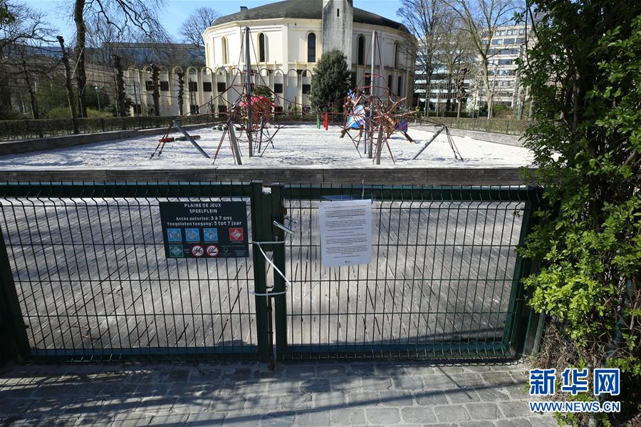 這是3月18日在比利時(shí)布魯塞爾拍攝的一處關(guān)閉的運(yùn)動(dòng)場(chǎng)。 新華社記者 張鋮 攝